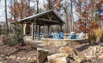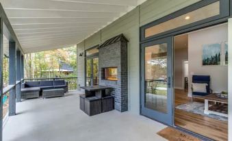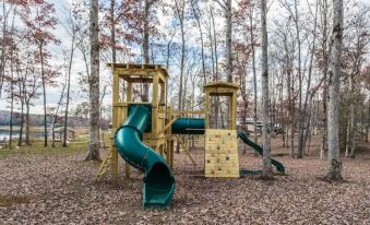 New 2 bedroom cabin in the Water's Edge community. Spacious family room to enjoy fireplace, TV, and dining area. Master bedroom has a king sized bed. The second bedroom has 2 twin bunk beds, trundle, and a loft. Outdoor living space patio with a grill, table, couch, and firepit. There is a community lake, playground, and hiking trail. We have two stand-up paddle boards, 1 adult kayak, and 1 child kayak. Pack n' play and high chair available.
