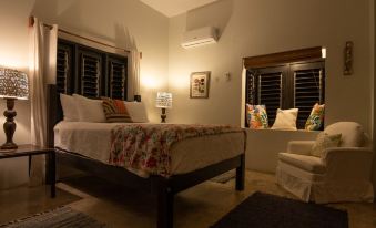 The Garden Suite of the villa is a completely self-contained downstairs floor of the Sea Urchin Villa. It has 2 bedrooms with queen beds in each and the tv room has 2 day beds. Perfect for a family vacation getaway or a soulful couple's retreat. Start your morning sipping a hot cuppa on the expansive verandah before strolling over to the sweetest swimming cove in all of Treasure Beach and afternoons reading a page turner in the swing chairs in the shade of the lignum vitae tree.About pets:No pets allowed.About checkOut:Check out before 11:00 AM.About children:Children allowed: ages 0-17.About checkIn:Check in after 3:00 PM.About smoking:Smoking is not permitted.About minBookingAge:Minimum age to rent: 21.About events:No events allowed.