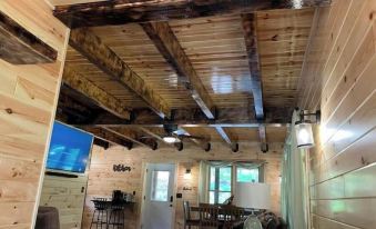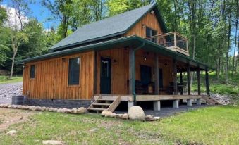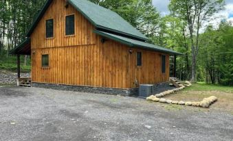 Kick back and relax in this brand new built rustic adirondack themed cabin (spring 2024). Open floor plan with custom beams & knotty pine thoughout. Sleeps 6 with 2 bedrooms & sleeper sofa. 2 full bathrooms , Big screen smart tv's in both bedrooms & livingroom. Stunning hickory kitchen , spacious wrap around porch , outdoor fire pit , propane grill. Private lake access (hinckley resevoir) , bring your boat or jetskis or use our kayaks & pedal boat. Public boat launch is 1/4 mile down the road.
