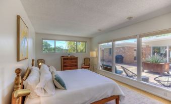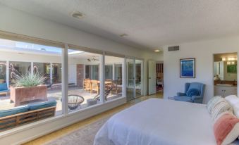 The main house surrounds the private courtyard and large windows flood the interior with natural light. Designed with guests in mind, it's the perfect place for families or friends. Most bedrooms include ceiling fans and the entire home is equipped with central AC. Our fully appointed kitchen has everything you need to make meals at home or brew a cup of coffee or tea first thing in the morning. All bathrooms have fresh, fluffy towels and sustainable bath products. Two cozy living rooms look out to the central courtyard and pool; one with a smart TV with streaming services.