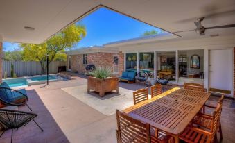 Kick back and relax in this calm and stylish space in the heart of Tucson! Our home is a mix of classic and Mid-Century Modern touches to create a cool and comfortable atmosphere. Enjoy light-filled spaces that look out to the private central courtyard, pool, hot tub, dining area and gas grill.