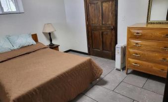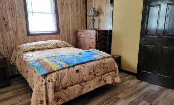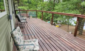 This beautiful, peaceful lakeside retreat has lots of room for private parking and outdoor fun. The beach is shaded, the lakeshore is sandy. clean and quiet on most days. Beautiful sunsets. A paddleboat, 2 Kayaks and floaties are available for your use. The lakeside level has a game room with some board games, a miniature foosball table, a private lakeside bedroom and large bathroom. Hike or bike in beautiful fall colors, winter ice fish, snowmobile trails nearby. Golf course nearby. Full kitchen with lakeside view, upstairs bedroom and kid bedroom with twin over full bunkbed. There are 3 channels on the tv and internet service is sometime spotty.