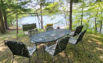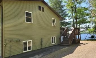 This beautiful, peaceful lakeside retreat has lots of room for private parking and outdoor fun. The beach is shaded, the lakeshore is sandy. clean and quiet on most days. Beautiful sunsets. A paddleboat, 2 Kayaks and floaties are available for your use. The lakeside level has a game room with some board games, a miniature foosball table, a private lakeside bedroom and large bathroom. Hike or bike in beautiful fall colors, winter ice fish, snowmobile trails nearby. Golf course nearby.