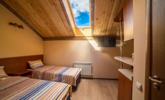 For accommodation, the hotel offers 25 rooms of Standard, Comfort, Family and Premium categories. All rooms are equipped with wide 2-bedroom beds or two one-and-a-half-bedroom beds. All have plasma TVs, refrigerators with mini-bars, electric kettles, air conditioning, dishes, some have a kitchenette with microwave. All rooms have a private bathroom with a shower or a bathtub, slippers, bath accessories, and a hairdryer. Each category has rooms on the 3rd floor (attic).