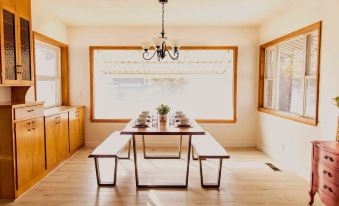 Great small town community with all the necessary amenities. Bright and super spacious, the Hankins Home is the perfect place to relax and share time with your family or friends. With modern and unique vintage touches throughout the home you are sure to enjoy each space as you settle in for your stay! Our place includes two open living spaces and a large outdoor area with a covered picnic gazebo. You'll enjoy country feels, set next to fields, and yet have all the convenience of being in town. Welcome to your Home Away from Home!About pets:Pets allowed: dogs less than 50 lbs per pet (limit 3 pets total).About checkOut:Check out before 11:00 AM.About children:Children allowed: ages 0-17.About checkIn:Check in after 4:00 PM.About smoking:Smoking is not permitted.About minBookingAge:Minimum age to rent: 18.About events:No events allowed.