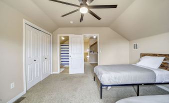Plenty of room for the whole family (or two) in this spacious 4 bed, 3 bath home. This is a split level home layout featuring 3 bedrooms and 2 full bathrooms downstairs, along with the kitchen, living room, dining room, and laundry room. Upstairs you will find a bonus room with a pullout couch and a private bedroom with 2 twin beds and an attached full bathroom. Attached 2 car parking garage is exclusively for guest use as is private fenced large backyard with patio and BBQ grill.About pets:No pets allowed.About checkOut:Check out before 11:00 AM.About children:Children allowed: ages 0-17.About checkIn:Check in after 4:00 PM.About smoking:Smoking is not permitted.About minBookingAge:Minimum age to rent: 25.About events:No events allowed.