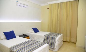 Quarto com cortinas rasgadas, secador de cabelo arrancado! Portas falsas que prejudicam muito a acústica dá para escutar tudo o que fala no quarto do lado, ar condicionado super fraco! Tv muito pequena, fronhas sujas e chave do registro da água do lavatório próximo do espelho quase cortei minha mão! ...