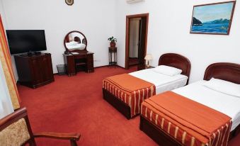 It offers 22 elegant rooms decorated in European style. Each room has everything you need for a comfortable stay and productive work: a comfortable bed, air conditioning, mini-bar, telephone with long-distance and international communication, free Internet access, safe, satellite TV.