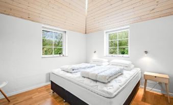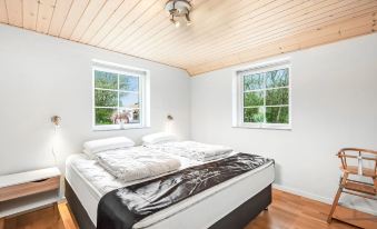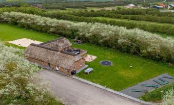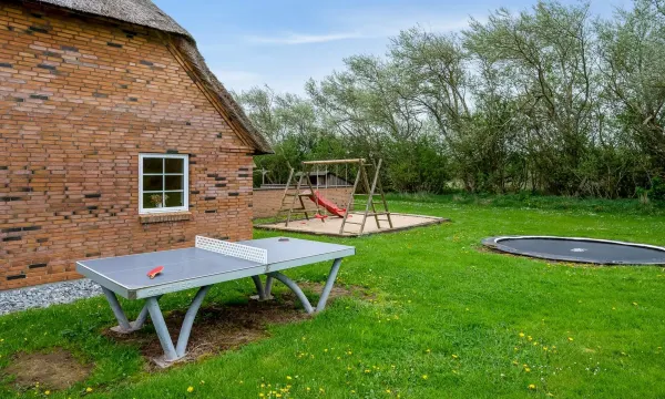 Single-family house, built in 2007. 1.6 km from the sea. Private: natural state property 5'000 m2, indoor pool (3 x 5 m, 1'6.6 m2, depth 130 - 130 cm). Terrace (50 m2), children's playground (swing). In the house: sauna, table football, trampoline, washing machine, tumble dryer. Parking at the house. Grocery 1 km. Golf course 18 km. The owner does not accept any youth groups. "Benthe" - from the sea", 5-room house 218 m2. Object suitable for 12 adults + 1 child. Living room with TV, radio and CD-player. 1 room with 1 double bed. 1 room with 1 double bed. 1 room with 1 double bed. 1 room with 1 double bed. 1 room with 1 x 2 bunk beds, 1 double bed. Kitchen (oven, dishwasher, 4 induction hot plates, microwave, freezer). 2 showers/WC, hydro massage bath. Facilities: children's high chair, baby cot. Internet (WiFi). Please note: non-smokers only. Maximum 2 pets/ dogs allowed. 661-184175