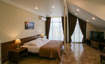 The hotel offers 24 rooms of various categories. All rooms have a double bed, 24-hour room service, satellite TV, wi-fi throughout the hotel, safe, air conditioning, mini-bar, bathroom with shower, hairdryer, towels, bathrobe, slippers, electric kettle, tea, coffee, mineral water. The superior rooms offer additional amenities.