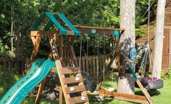 Great, informal place with lake access for easy swimming, a fully equipped kitchen for cooking, comfy rooms, spacious grounds with games, as well as indoor games in the spacious kitchen and dinning room, so very child friendly. Great hospitality by the host and hostess. Nightly bonfires around which people tend to gather. The host plays the guitar while people sing! French-Canadian warmth. Bikes, kayaks and canoes on hire. Within walking distance of Val David's attractions. This artsy town which does not have a commercial vibe (yeh!) is well worth a visit.