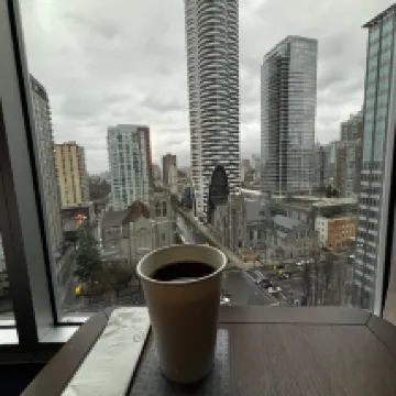 The hotel's location is excellent, with very convenient transportation nearby. It was my first time visiting Vancouver to see my child, and it only took 20 minutes by taxi from the airport to the hotel. My check-in experience was also fantastic. It's definitely a hotel I'd recommend to friends.