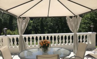 Dejligt sted med fin pavillon, så der er fin mulighed for at sidde ude.
