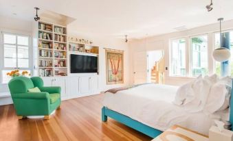 There are many shops, restaurants, and superb grocery stores within blocks, as well as art installations, galleries and hikes within five miles. For the culinary savant’s dream; the home features a fully equipped kitchen, rooftop garden, BBQ and pizza oven. You may choose Al Fresco dining in any one of the outdoor spaces, or perhaps a movie or a game of ping-pong or darts in the basement. The layout and bright colors of this home make it ideal for entertaining and can easily accommodate a catering staff or event staff if needed.