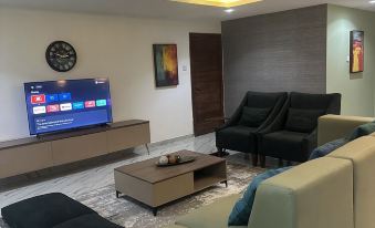 Enjoy beautifully furnished interiors, a fully equipped kitchen, and high-speed internet in a serene and secure environment. Each bedroom is tastefully designed and comes with quality bedding, ample closet space, and cooling AC. The living area is warm and inviting, with plush seating, a smart TV, and plenty of natural light.