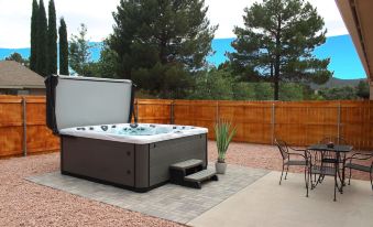 This authentic, modern, clean and cozy home here in red rock Sedona is walking distance to shopping, restaurants, golf courses, and hiking trails. We offer everything you need for a comfortable and enjoyable visit. This bright home has space for up to six people and consists of california king size beds in all 3 bedrooms, Smart TVs in all bedrooms, comfortable sofas with a home theater projector, Wi-Fi internet, smart home capabilities, Alexa’s in every bedroom, two marble bathrooms, full kitchen, and a laundry room. When you step outside in the backyard you will find a private luxury therapeutic master spa with massaging jets and magnetic therapy ( check out video of the spa here at https://www.youtube.com/watch?v=WCuDGEeX2u0 On the front patio you will find a nice courtyard area with red rock views, chairs, and a table which is a perfect place to drink your morning coffee, eat something or just relax and enjoy beautiful Sedona. Bring your furry friend and hit the beautiful Sedona trails. This a pet friendly home, with a dog door, fenced yard, tile floor, and a auto feeder. Available for 30 days and multiple months with a discount.About pets:Pets allowed: dogs (limit 3 total).About checkOut:Check out before 11:00 AM.About children:Children allowed: ages 0-17.About checkIn:Check in after 4:00 PM.About smoking:Smoking is not permitted.About minBookingAge:Minimum age to rent: 21.About events:No events allowed.