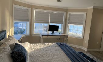 The second you arrive at this bayfront home on Wildwood Avenue you will be stunned by the views. Enjoy a private space that will allow you a front row seat to the most spectacular sunset views at the Jersey shore! This new construction home comfortably sleeps 10 with bayfront views in 4 of the 5 bedrooms. There are 3 full and one 1/2 baths. Enjoy breakfast at the island in the beautiful kitchen with stainless steel appliance, gas oven and gorgeous quartz countertops and watch all the sights the bay has to offer. After spending your day kayaking on the bay or enjoying an afternoon on the sand, come home to a lovely living space that includes a flat screen TV and gas fireplace as well as a bonus room that features a 60-inch TV and ping pong table. Not a fan of the sand? No problem! You can enjoy your day floating in the gorgeous salt water pool on the lower deck that boasts views of the bay. The master bedroom features a king size bed, on suite full bath and enormous walk in closet. The second bedroom features a full size bed with views of the bay. The third bedroom features a full size bed with a full size trundle and a view of the bay. The fourth bedroom features a bunk bed with a twin size bed on top, full size bed on the bottom and an additional full size trundle. All beds have new memory foam mattresses. An additional full bathroom and laundry room complete the second floor. When you head back down to the main floor a fifth bedroom features another king size bed with on suite full bath. On the ground floor in the bonus room you will find a full size pull-out couch.