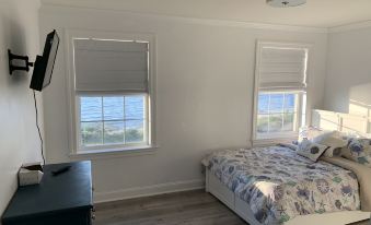 Lovely deck with amazing views. Large clean home fully equipped with anything you could possibly need on your beach vacation. The two master suites were a plus for the four adults. Spacious rooms. Loved the downstairs. Perfect for our youngsters play area. Steps away from the beach and a pool. Will most definitely be back.