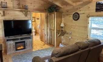 NOW OPEN !!! Nestled deep in the mountains is this cozy real log cabin. Perfect for romantic getaways, family gatherings, this is a great place to unwind and get away from it all , spend time relaxing on your private deck surrounded by the sounds of nature with all the comfortable amenities of home including a nice kitchen and spacious bath with a deep soaking tub and rainfall shower , a bedroom furnished with a full sized bed, 60” smart tv, a comfortable fold out couch is located in the living room for additional sleeping, the 30 foot covered front porch has a view of a hill side overlooking the mountain. It’s secluded and very peaceful. This cabin is located directly on land you are allowed to ride your atvs, ( a $30 daily riding fee ) pets are welcome please just be sure to put them on your reservation so they are included , feel free to message me with any questions you may have. I will answer as promptly as possible. I look forward to hosting you with an amazing stay.About pets:Pets allowed: limit 1 total.There is a pet fee of $25 per pet per day.About checkOut:Check out before 11:00 AM.About children:Children allowed: ages 0-17.About checkIn:Check in after 2:00 PM.About smoking:Smoking allowed: in designated areas.About minBookingAge:Minimum age to rent: 18.About events:Events allowed: family gatherings, birthday parties, weddings.Maximum event attendees: 99.