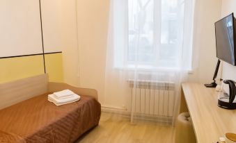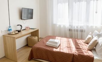 The hotel has single, double and large family rooms for 4 people. The rooms have large comfortable beds, power sockets above each bed and bedside tables, desk and TV. The bathroom is equipped with a shower, hairdryer and toiletries. Bed linen is provided.