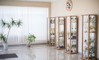 The two-storey building of the Olympia Hotel is an integral part of a large sports complex. 59 rooms of Economy, Standard, Comfort, Superior, Junior Suite categories are offered for accommodation. Each of them has everything you need for a comfortable stay: a work desk, a comfortable bed, an LCD TV, a mini fridge, a kettle, Wi-Fi. The bathroom comes with a hairdryer, a set of towels and toiletries.