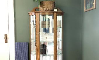 The cozy downstairs bedroom offers a comfortable queen bed and a convenient half bath, plus thoughtful touches like a sound machine, box fan, and even a playpen to make little travelers feel at home.