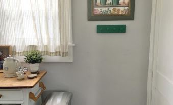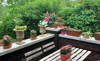 Out front, a porch blanketed in blooms, during the spring and summer months, invites you to sip something warm, listen to the birds, and watch the soft bustle of Main Street. With a sweet little seating area tucked among the flowers, it’s the perfect spot for quiet mornings or golden-hour daydreaming.