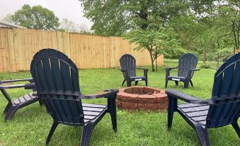 Out back, a private fire pit waits beneath the stars. It’s perfect for marshmallows, stories, or simply breathing deep and being still. Throughout the day, a passing train rolls by just beyond the yard. It’s like an old friend traveling through time. Children wave. Adults pause. Everyone feels its wonder. For light sleepers or those sensitive to the train sound, we've thoughtfully provided box fans and sound machines to ensure a more restful stay.