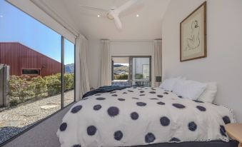 A 2020 built one storey modern spacious home (approx 260 sqm house and studio) situated on a hill boasting amazing lake and mountain views, whilst still being a short walk to the lake and Wanaka township. Sun drenched, warm family home with separate living and bedroom wings with a connected partially covered central deck perfect for outside dining. Guest feedback excellent eg Charlie in Aug 2023 said "excellent house, view was awesome. House is much better than pictures and pictures were great " The house has been rented out to guests through other platforms since 2020 and has achieved 4.96 out of 5 average rating.