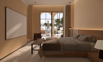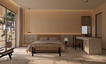 The design of the homestay integrates exotic charm with modern minimalist elements. With arched verandas, the building blends poetically with light and shadow, resembling a Moroccan courtyard. The guest rooms feature a new mid-century style, exquisitely crafted to emanate natural elegance, bearing the freehand beauty of a master's brushwork. Floor-to-ceiling panoramic windows frame the magnificent mountain views into a huge scroll. A private 200-square-meter swimming pool shimmers in azure, complementing the clear sky perfectly.