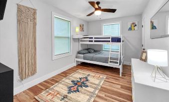 As soon as you step inside, you'll be greeted by the charming and cozy foyer with the perfect selfie wall. The decor throughout the house is inspired by both the beauty of the birds and flower it is named after. Decorated with colorful accents and artwork that will transport you to a tropical paradise, this home is perfect to come back to after your daily adventures or long day of working.