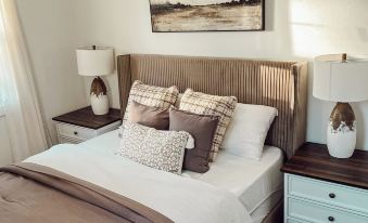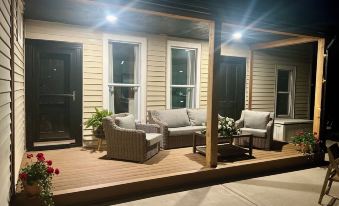 Our home comfortably sleeps 8, with a spacious living area featuring a cozy sectional and fireplace, a fully equipped kitchen, and multiple outdoor spaces! Including a fenced-in yard, front porch, and side patio perfect for relaxing with a cup of coffee or enjoying the evening breeze! It’s located on a white corner with privacy for quiet time on the patio!