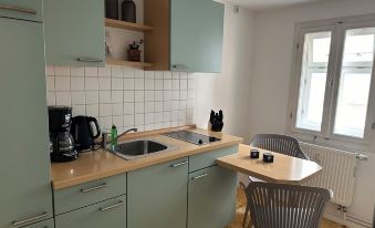 Small cozy apartment in the Eckermannhaus right in the center of Weimar (Thuringia) invites you to spend the night in a historic atmosphere. You are visiting Goethe's friend and secretary Johann Peter Eckermann. He gave the house where he lived until 1823 his name. This small apartment measures 26 square meters and is located on the first floor. 2 people can stay here. The preserved small spatial structures shape the historical ambience. The apartment is furnished in Biedermeier style and consists of a living room, a kitchen, a hallway and a bathroom. The kitchen with dining area is fully equipped. The living-bedroom is furnished in the Biedermeier style (beds 2 m long). Bed linen is included and cable TV is available. The bathroom is spacious. It has a bathtub and toilet, towels are provided. The listed building is one of the oldest residential buildings in the “Frauentorvorstadt” (center) in Weimar.About pets:Pets allowed: dogs less than 22 lbs per pet (limit one pet total).About checkOut:Check out before 11:00 AM.About children:Children allowed: ages 0-17.About checkIn:Check in after 2:00 PM.About smoking:Smoking is not permitted.About events:No events allowed.