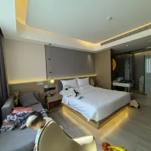 I was very satisfied with my stay. It was clean and very new. My daughter liked Xiaole and the robot very much. She didn’t want to leave. They provided children’s slippers, toothpaste and toothbrushes, and bath balls, which are not found in other hotels. She will stay here again next time.