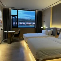 The details of the room are very considerate. The bathroom is equipped with disposable bath flowers and toilet mats. The toilet is also smart and the room is clean. We went out to play and the customer service helped us check out late. The windows in the room are also very soundproof. It's very noisy outside and you can't hear anything when you close the window. The small sofa in the room can be put together for children to sleep on.