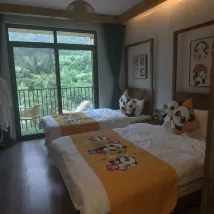 The room was very satisfactory and clean. The balcony was across from the hilltop of the Panda Base, and the morning mist was curling in. There was a hot spring in the evening, and the hot spring pool was covered with gauze. The atmosphere was great and I highly recommend it.