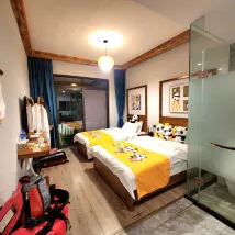I was traveling alone to see Pubao, so I looked around and chose this hotel because it was right in front of the panda base. I was worried because I'd be arriving at the hotel around 3 a.m. after taking an 8 p.m. flight, but they responded quickly on WeChat, so I was able to ask a few questions and make the reservation. I had a worry-free trip. The water pressure was great, and it was incredibly warm. However, the hallway noise was... ㅠ Taxi reservations are 50 cents more expensive than other options, so keep that in mind. I didn't eat breakfast because of the spice smell.