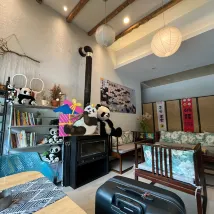 The room was also clean and decorated with panda-themed elements, which was so charming. The terrace was comfortable, perfect for enjoying fruit and snacks while admiring the diverse flora.