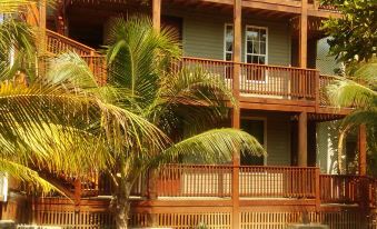 The hotel is waterfront , my room had a balcony facing the ocean with a hammock. They have a pool facing the ocean , it is nice. I believe you can get into the ocean right from the hotel and even snorkel there. The breakfast is ok. They have dinner and lunch (American prices). They follow their policies to the dot. They will not move a finger to place a smile on the clients face. If I pay $50 for early check in , I could come in anytime in the morning . So, I decided to wait a bit for check in , but they would not check me in until 245 to 300 PM. The place was completely empty. I complained to the manager , she said there was a large group coming in , there were no large group, no large group arrived that day in the afternoon, evening , or following morning . The pool and dining area were empty the whole time . It is all about the money. They could not check me in even at 2 PM without charging $50 , check in time is 300 PM, it is their policy. Then, Saturday morning the day after July 4th , they empty the pool to paint and clean it, so no one could wake up and use pool until late afternoon. The breakfast is from 730 AM to 830 AM . God forbid you wake up on vacation at 845 AM, you are out of luck. But, that is their rules.We did not have our room cleaned for the 3-4 days, we were there. They charge in American $, but their service is not what we get in a two or three star hotel in the USA.