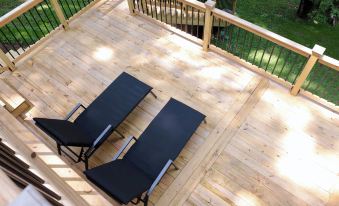 Step out onto the back deck to enjoy a morning cup of coffee or a glass of wine to wind down your day. It's the perfect size for enjoying a meal outside or playing board games. Additionally, a gas grill is available for you to use.