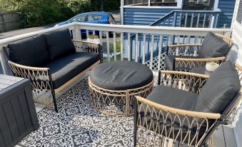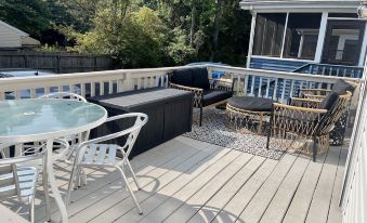 Welcome! The whole cottage will be solely yours. It has its own parking right out front that has ample space for 3 cars. The newly painted deck has brand new comfortable boho furniture, perfect for morning coffee or a evening cocktail. The deck also has a table for four, to crack some crabs or play a card game.