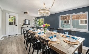 The Heights Hideaway also provides guests with 2 separate living rooms, a game/movie area, dining room that seats 12 and a spacious back yard with a fire pit, BBQ, additional seating and fun yard games for everyone!