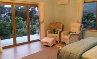 A warm welcome from Kevin and the dogs on arrival. A lovely clean, beautifully decorated accomodation. All necessary equipment to cook and some basic pantry items provided. Fresh milk which we loved(not uht) and some yummy cereal. The spa was fabulous and views perfect. We had a real nice peaceful stay which was what we were looking for. Finished off with a 2 minute drive to ocean beach before heading off. Fabulous property, fabulous hosts.