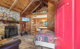 With a king sized bed and a sleeping loft with a double memory foam mattress, our studio-style Bear Paw Cottage comfortably sleeps two adults and two small children.