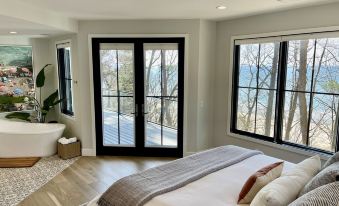 After dinner, head out to the screened in porch and enjoy a lake Michigan sunset, or, if you can find the secret entrance, test your mixology skills and relax in a chesterfield in this modern take on a 1920's speakeasy complete with wet bar, ice maker, drink and wine fridge.