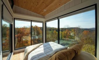 Our spacious home custom designed and built with 8 shipping containers boasts every amenity you want. 3 master bedrooms designed with amazing panoramic views. Bedroom 1 we've nicknamed the glass bedroom with three sides floor to ceiling total glass windows. Bedroom 2 has two large floor to ceiling windows and a 55 inch tv. Bedroom 3 is accessed by the custom made cherry wood spiral staircase. This bedroom has led multi-color changing lights in the ceiling and a sliding glass door to your own private balcony.