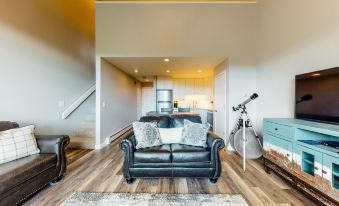 Polished and clean, this condo takes a new approach to the idea of a mountain retreat. Step inside and you'll encounter the full kitchen, organized to take advantage of the space but still feel relaxed. Eat together at the bar-style table, or enjoy it on the private balcony with a sweeping view of the valley and mountains. Then guests can take the telescope out and observe the stars and planets once the sun has fully set. Cozy up to the gas fireplace after a day on the mountain! Upstairs, guests can relax in a loft bedroom complete with a separate bathroom upstairs. The sofabed provides extra space for little ones or adult guests if needed. There are so many ways to feel connected to the area in this lovely loft condo.