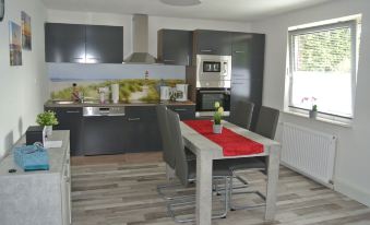 In the holiday house are in combination kitchen, dining and living room, with a sofa bed. There is a 46 "TV with DVD player available.