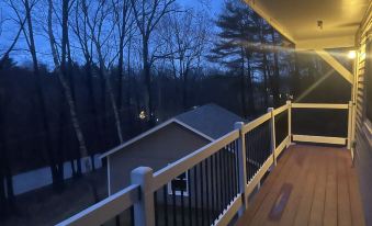 Outside- Plan for peaceful mornings looking out over the tranquil woods from your second level deck, grill-and-chill on the completely private patio with some yard games, or celebrate into the night on the oversized front deck with a camp fire roaring!
