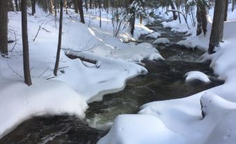 Brook View House is located in the town of Wilmington, just six miles from Whiteface Mountain Ski Area. It sits on the back corner of a wooded five-acre property that backs up on 60,000 acres of public New York State Wild Forest lands. New Bridge Brook runs by the house year round and offers beautiful views as well as the pleasant sounds of flowing water. There is plenty to explore in the woods behind the house, including a hiking/biking/skiing trail that you can access from the property and take for many miles to a pond and lean-to. Along with the wonderful wooded areas, there are also open grassy spaces for outdoor play, trails that wander around the property, an unheated garage and a fire pit with seating for large groups. Smooth roads with light traffic beckon cyclists, extensive trails nearby serve mountain bikers and trail runners, and local swimming options abound.